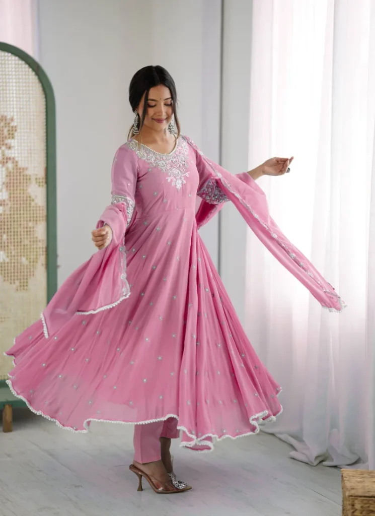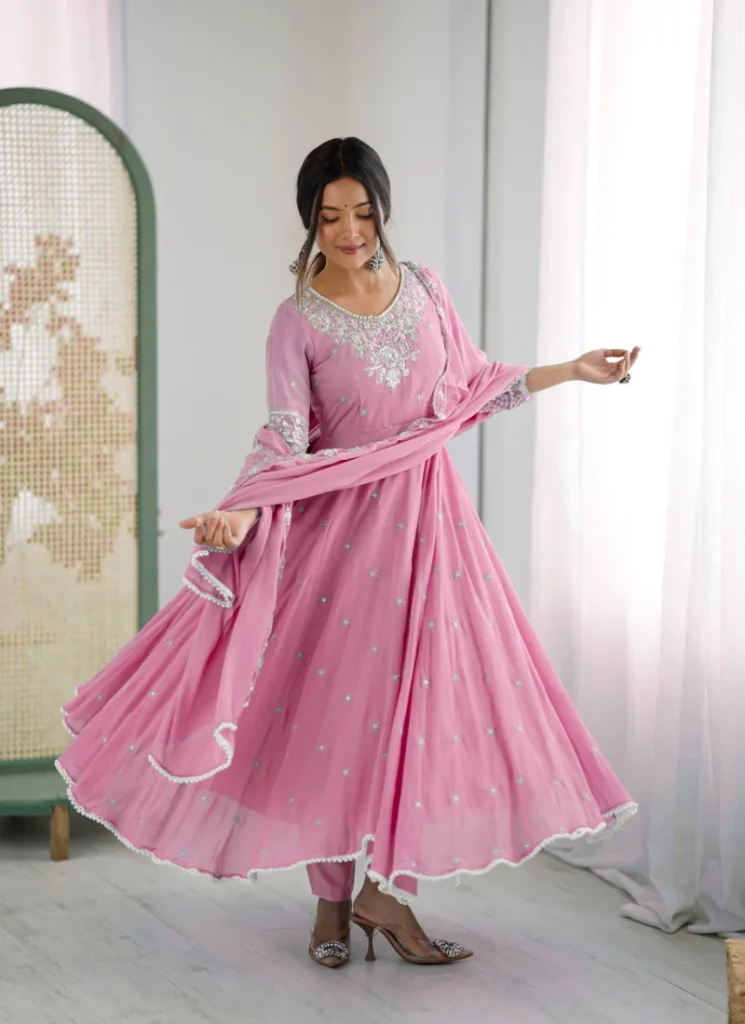 Anarkali Salwar Suits: Flowing, royal silhouettes ideal for weddings and festive occasions.