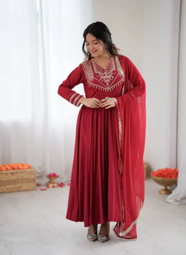 Anarkali Salwar Suits: Flowing, royal silhouettes ideal for weddings and festive occasions.