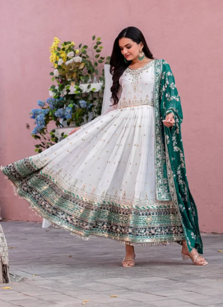 Anarkali Salwar Suits: Flowing, royal silhouettes ideal for weddings and festive occasions.