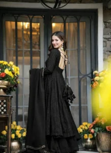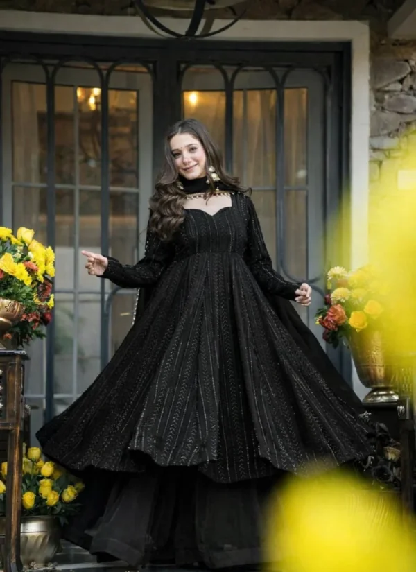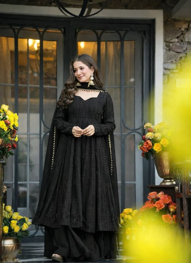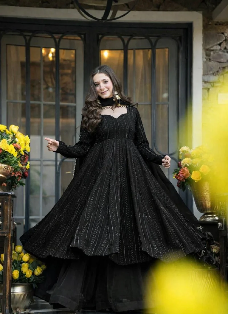 Whether styled for festive outings, party wear, or traditional celebrations, this Black Faux Blooming Embroidered Anarkali Suit offers a premium ethnic look that feels timeless and easy to accessorize.