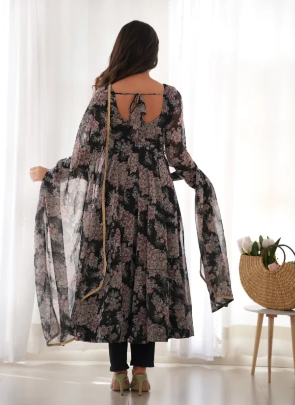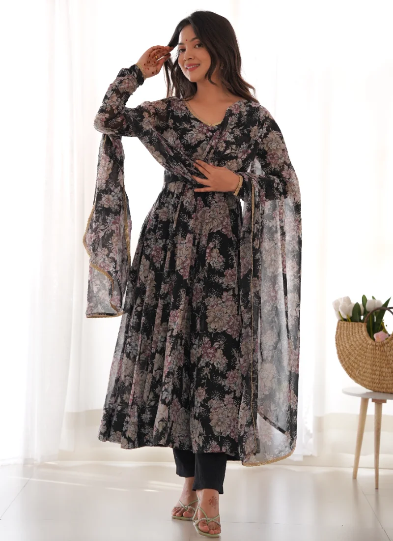 Product NameBlack Fox Georgette Multi Floral Print Lace Work Anarkali Set