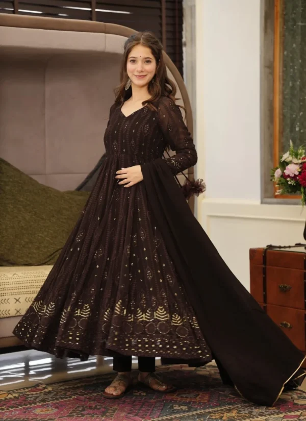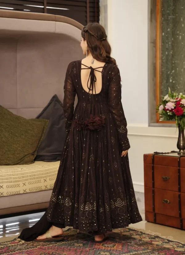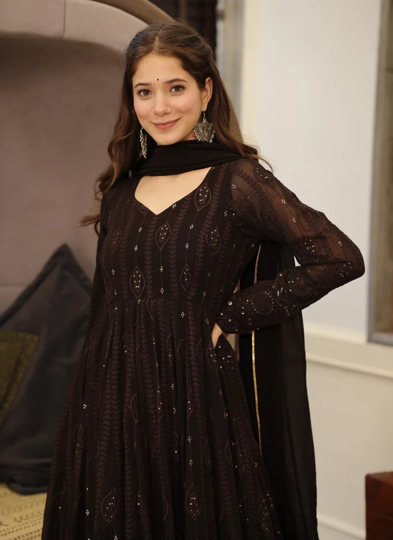 Perfect for festive gatherings, family functions, wedding events, and celebration wear, this Black Georgette Embroidered Anarkali Suit is designed to deliver standout style with versatile elegance.