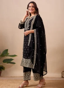 Product Highlights: The Black Velvet Palazzo Dupatta Set brings together refined ethnic styling, flattering structure, and a complete set for festive events and celebrations.
