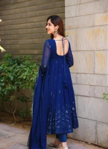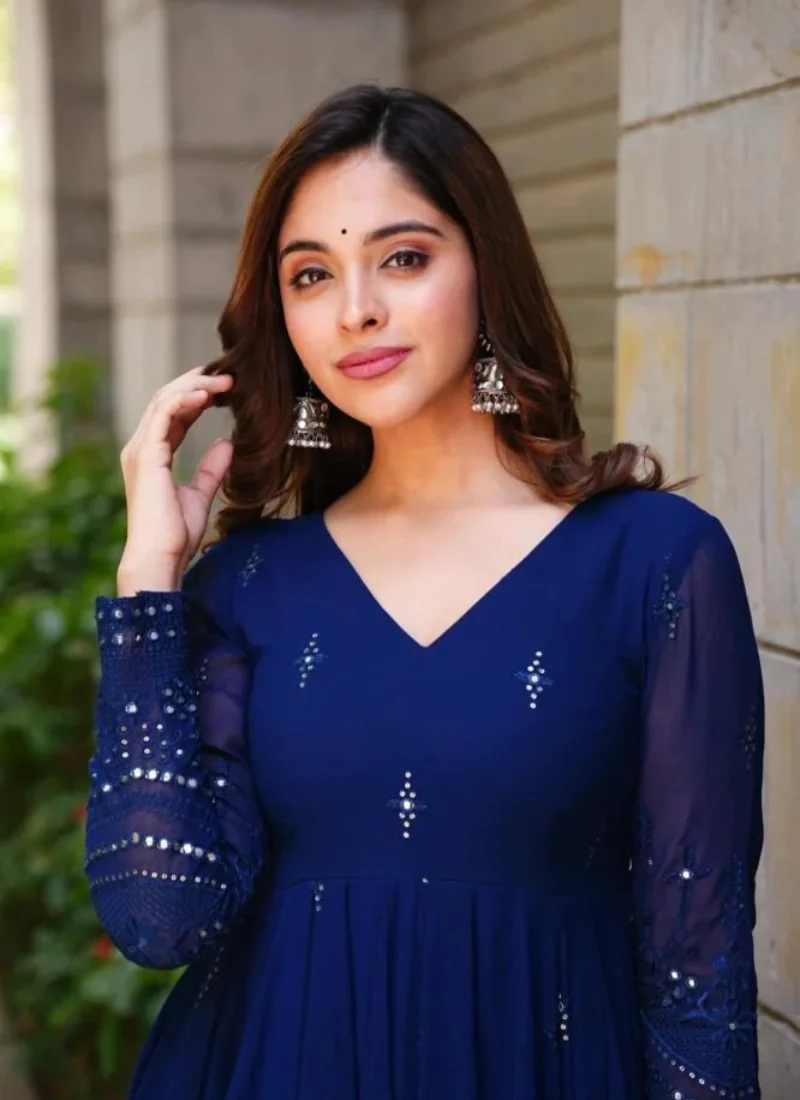 From intimate celebrations to festive occasions, this Blue Cotton Embroidered Anarkali Suit pairs beautifully with statement earrings and heels for a polished traditional look.