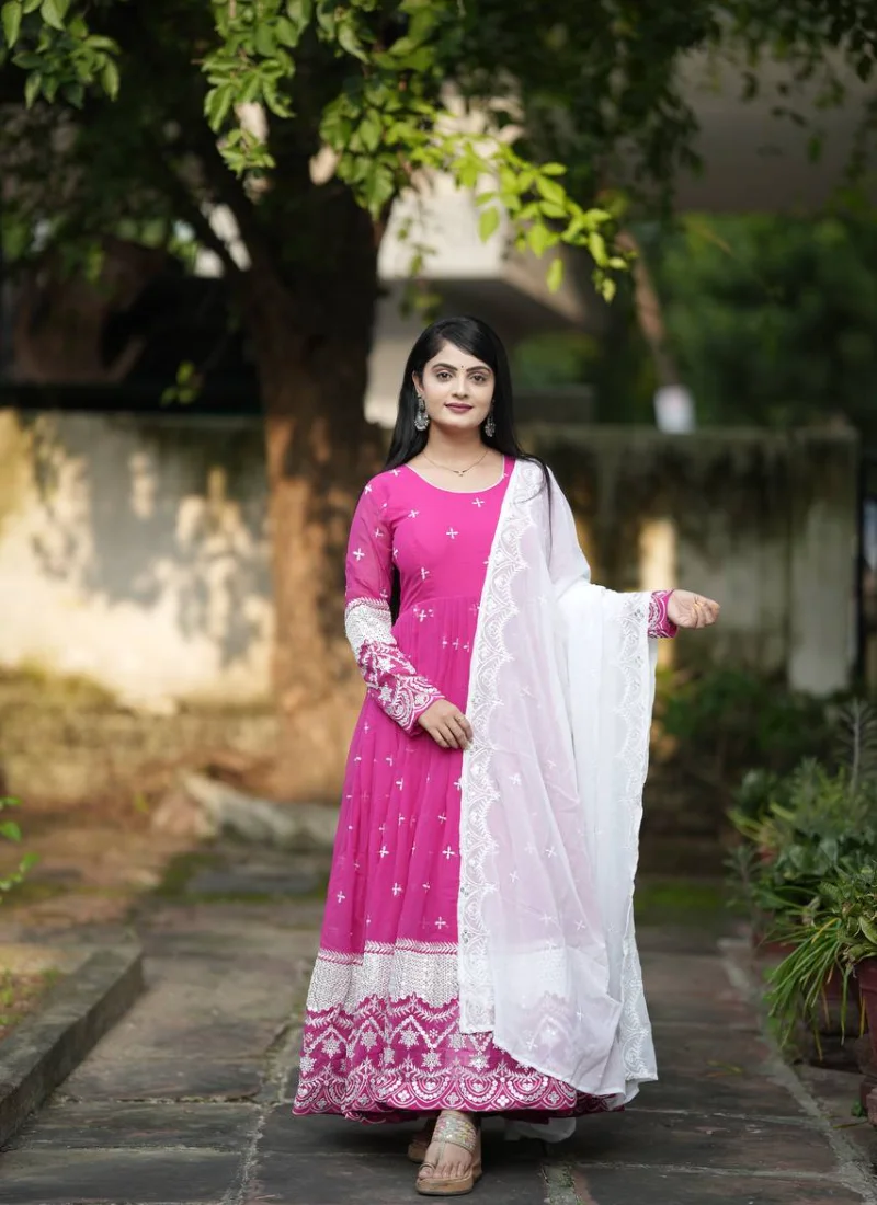 Designed for festive elegance, this Blue Georgette Embroidered Anarkali Suit brings together graceful styling and everyday comfort.