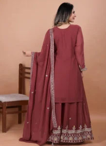 Perfect for festive gatherings, family functions, wedding events, and celebration wear, this Burgundy Georgette Embroidered Salwar Suit is designed to deliver standout style with versatile elegance.