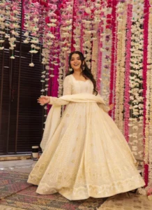 Whether styled for festive outings, party wear, or traditional celebrations, this Cream Georgette Embroidered Anarkali Suit offers a premium ethnic look that feels timeless and easy to accessorize.