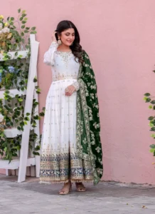 With its coordinated styling and ready-to-wear finish, this Green Faux Georgette Embroidered Anarkali Gown Set is an effortless choice for dressing up with confidence and comfort.
