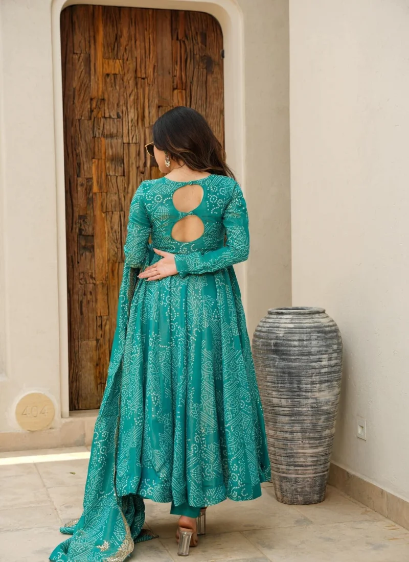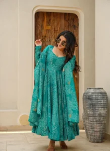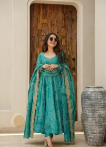 Whether styled for festive outings, party wear, or traditional celebrations, this Green Muslin Embroidered Anarkali Suit offers a premium ethnic look that feels timeless and easy to accessorize.