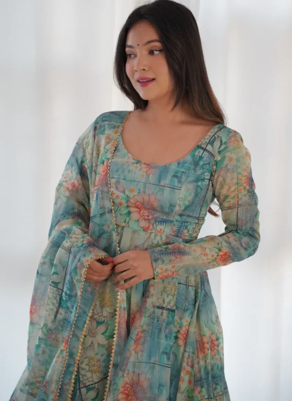Product NameGreen Organza Silk Print Lace Work Anarkali Set