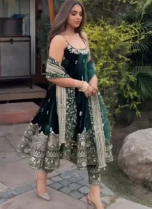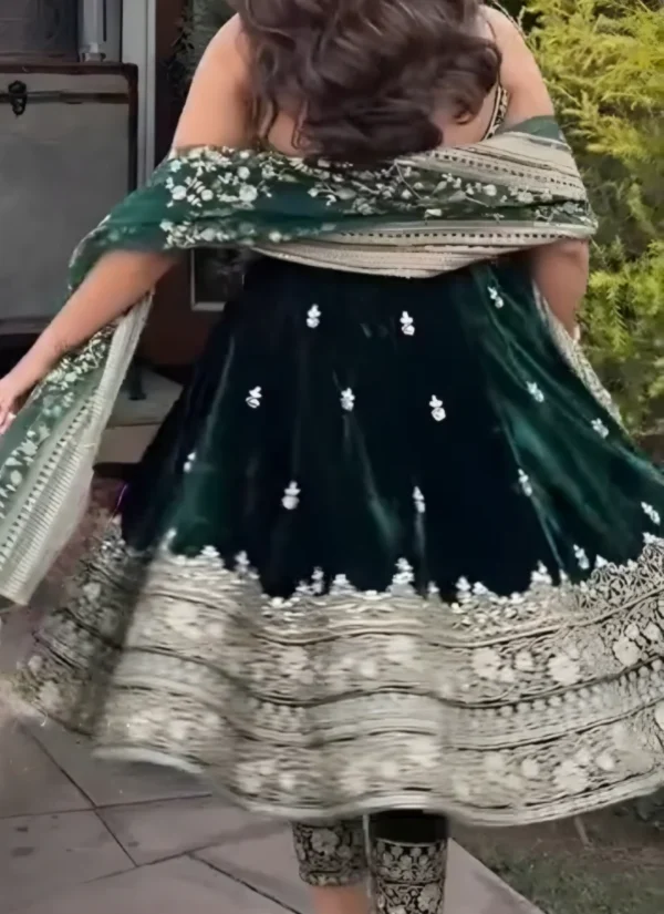 This Green Silk Embroidered Salwar Suit is a flattering wardrobe essential that blends premium fabric, polished detailing, and easy wearability.