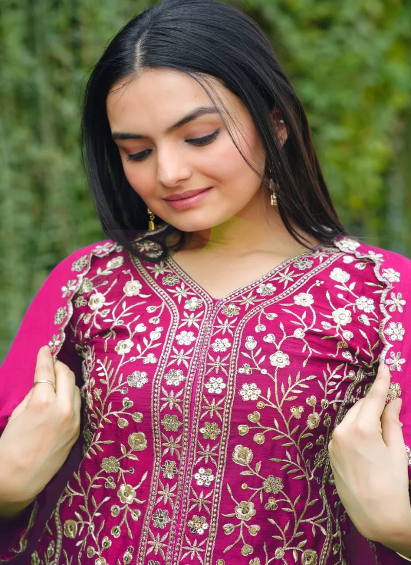 Perfect for festive gatherings, family functions, wedding events, and celebration wear, this Magenta Silk Embroidered Salwar Suit is designed to deliver standout style with versatile elegance.