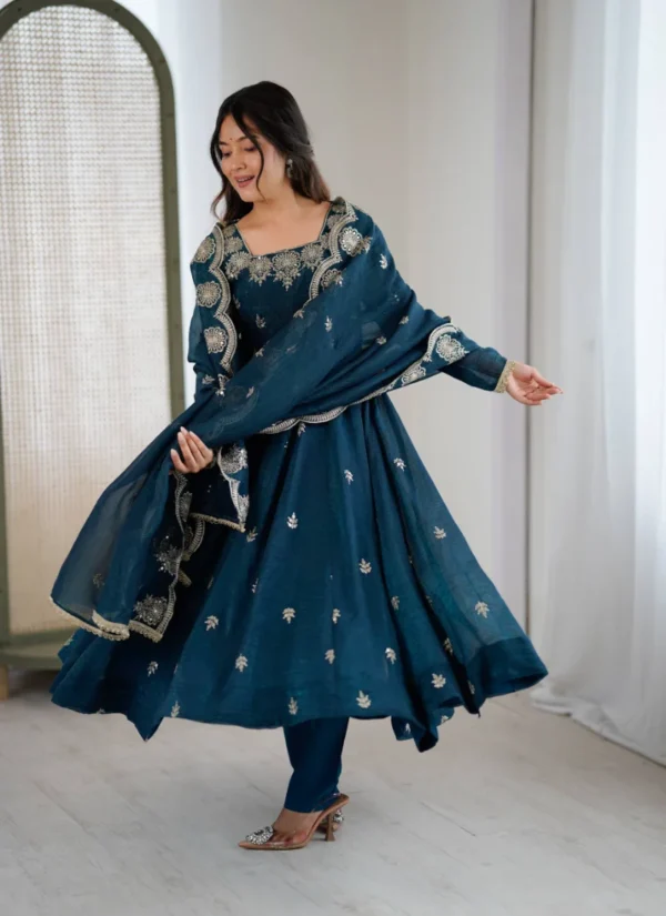 Its Crunchy Silk base is styled with Micro Cotton and Crunchy Silk dupatta, creating a complete ethnic ensemble. Embroidery Sequence Work. Available in M (38), L (40), XL (42), XXL (44).