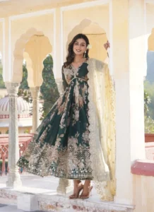 Crafted for a rich ethnic look, the kurta showcases embroidery accents and a well-structured fall. Paired with a coordinated bottom and elegant dupatta, the set creates a complete outfit that feels occasion-ready without compromising comfort.