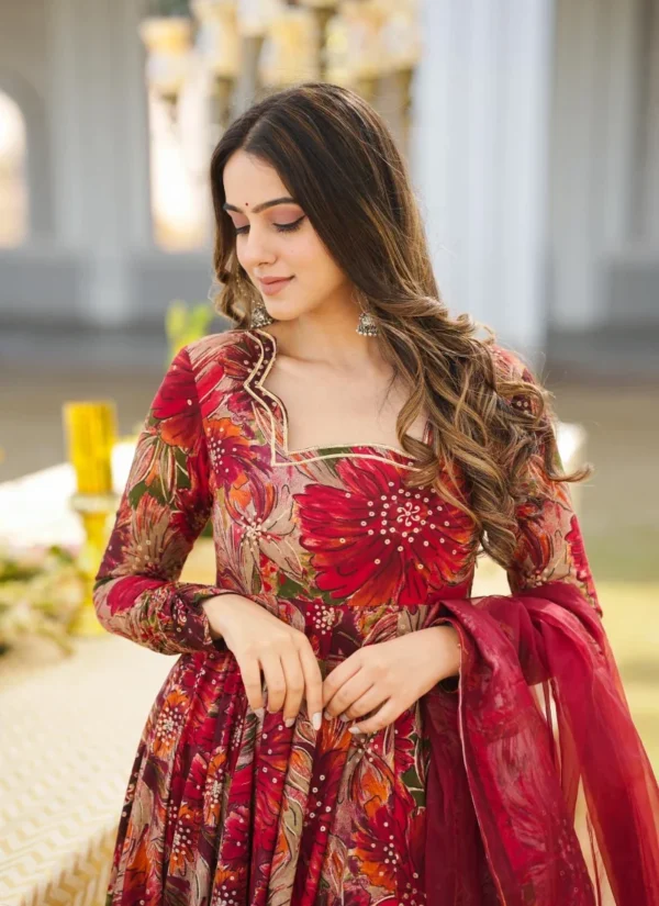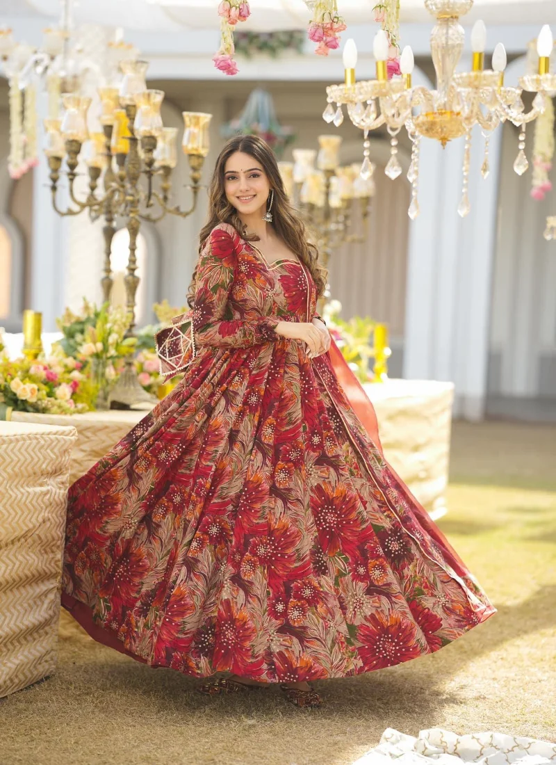 Perfect for festive gatherings, family functions, wedding events, and celebration wear, this Multi Georgette Embroidered Anarkali Suit is designed to deliver standout style with versatile elegance.