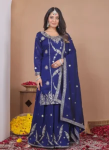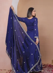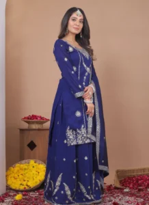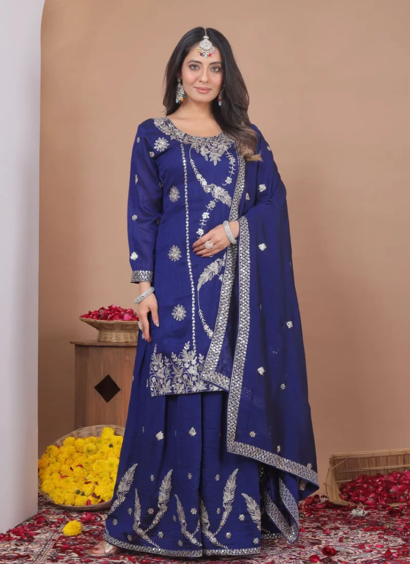 Whether styled for festive outings, party wear, or traditional celebrations, this Navy Blue Silk Embroidered Salwar Suit offers a premium ethnic look that feels timeless and easy to accessorize.