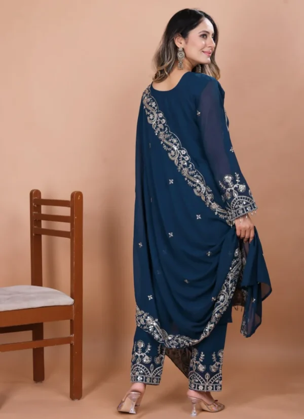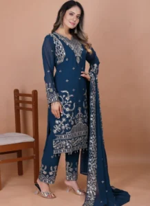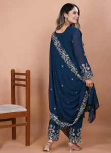Perfect for festive gatherings, family functions, wedding events, and celebration wear, this Navy Blue Silk Embroidered Salwar Suit is designed to deliver standout style with versatile elegance.
