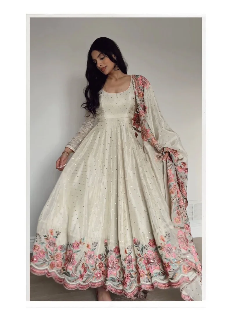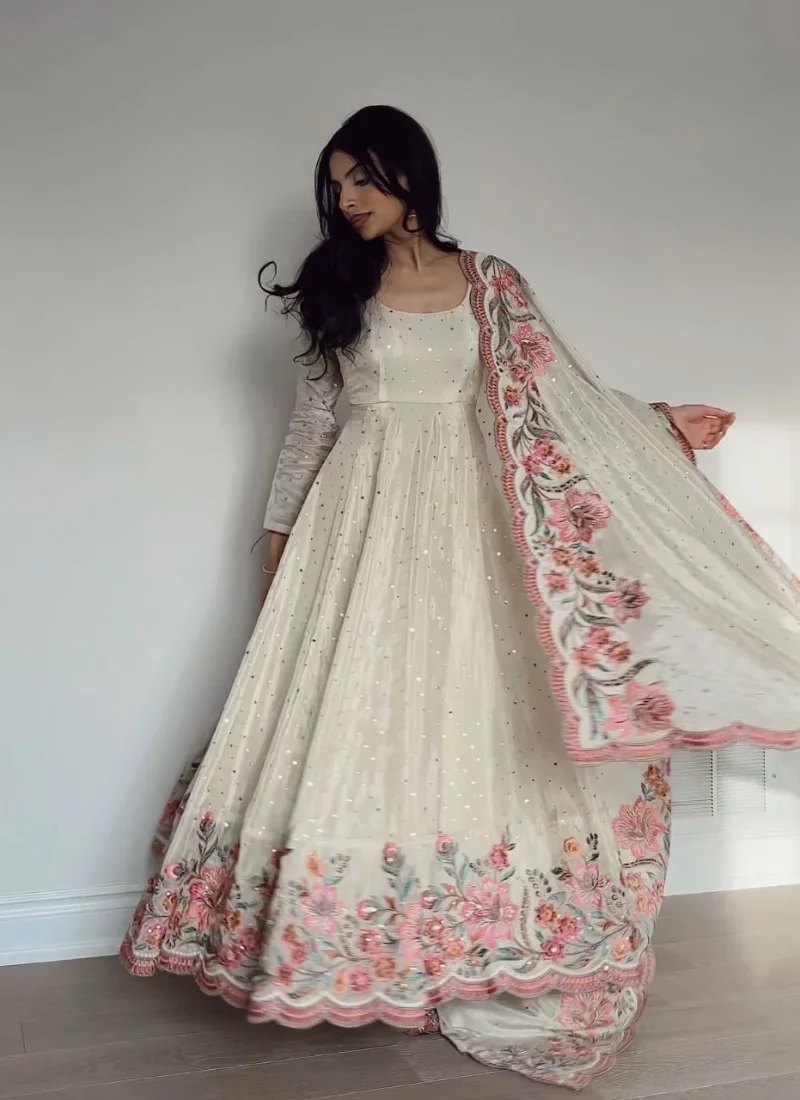 Whether styled for festive outings, party wear, or traditional celebrations, this Off White Silk Embroidered Anarkali Suit offers a premium ethnic look that feels timeless and easy to accessorize.