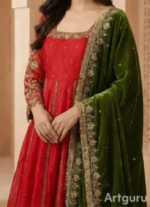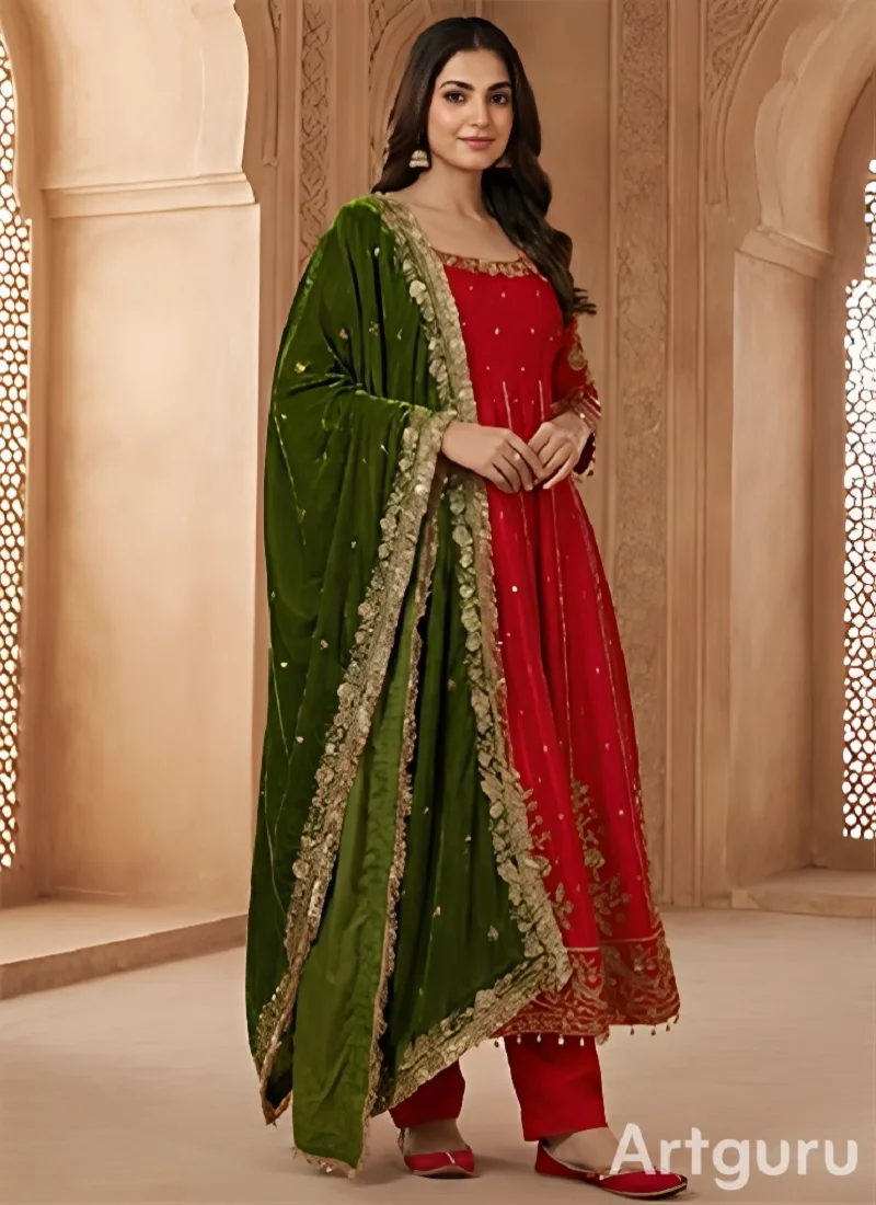 With its flattering drape and refined finish, the kurta highlights embroidery work and a graceful neckline. The stitched bottom and matching dupatta make this set ideal for effortless dressing across festive and semi-formal moments.