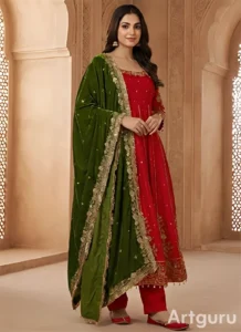 This Orange Silk Embroidered Salwar Suit is a flattering wardrobe essential that blends premium fabric, polished detailing, and easy wearability.