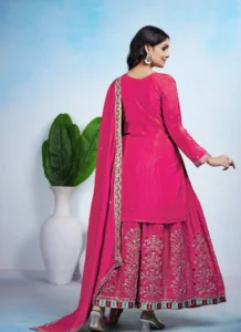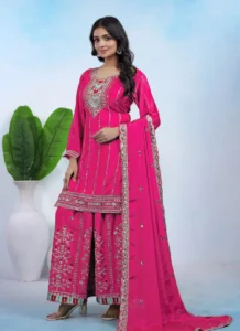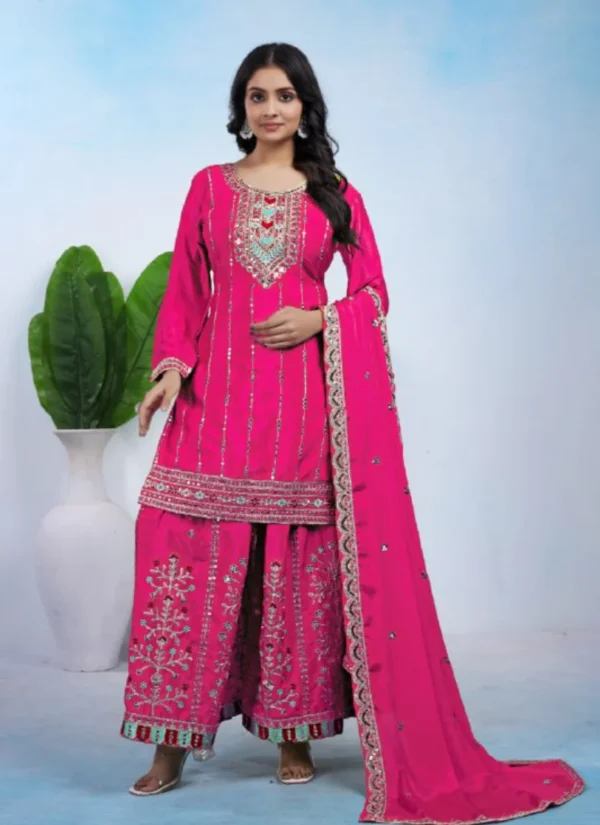 Perfect for festive gatherings, family functions, wedding events, and celebration wear, this Pink Chinon Embroidered Salwar Suit is designed to deliver standout style with versatile elegance.