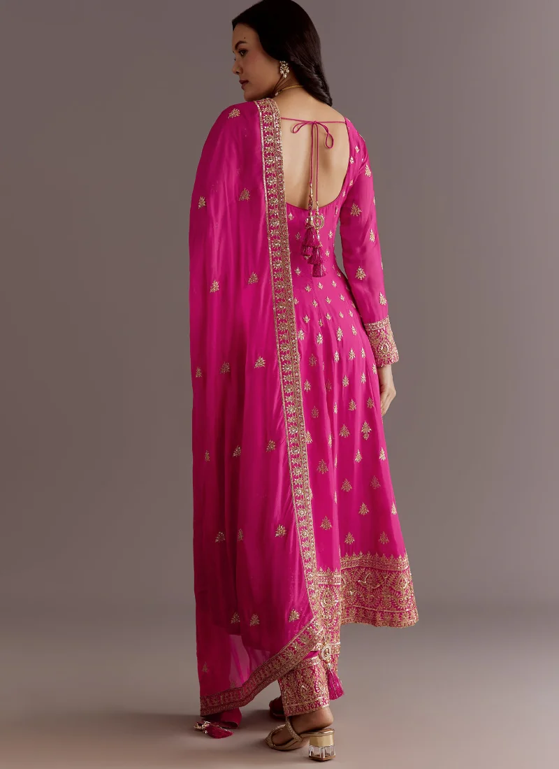 Pink Chinon Silk with Embroidery Sequence Work Palazzo Suit