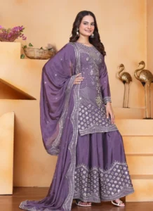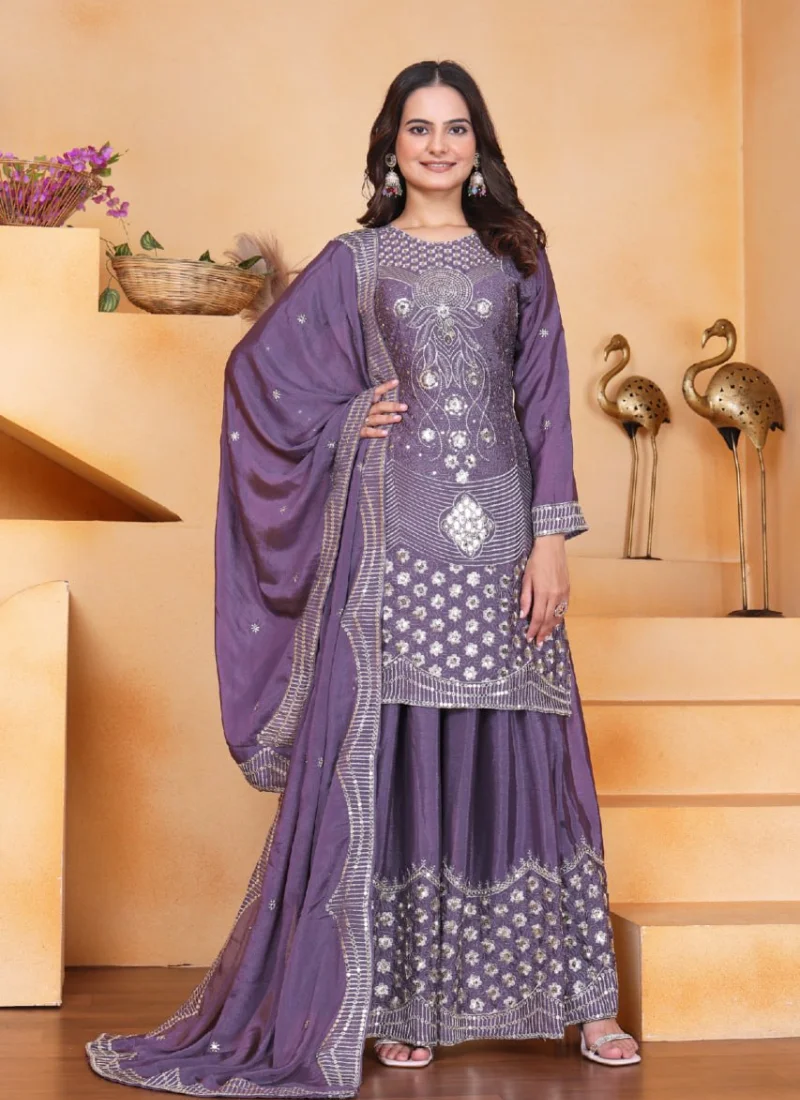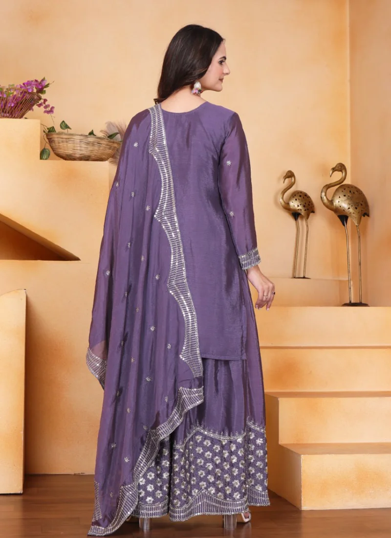 Perfect for festive gatherings, family functions, wedding events, and celebration wear, this Purple Chinon Embroidered Salwar Suit is designed to deliver standout style with versatile elegance.