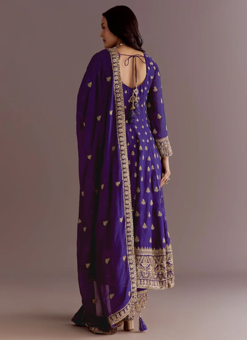 Purple Chinon Silk with Embroidery Sequence Work Palazzo Suit