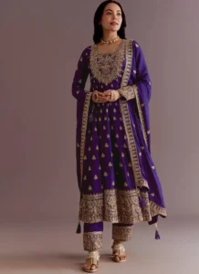 The Purple Chinon Silk Palazzo Set is a versatile festive pick that pairs premium fabric with graceful movement and coordinated pieces.