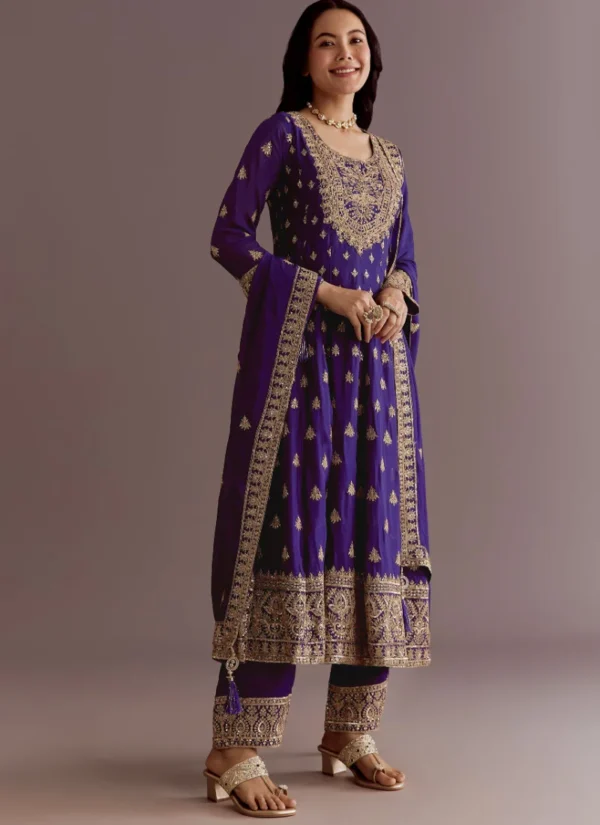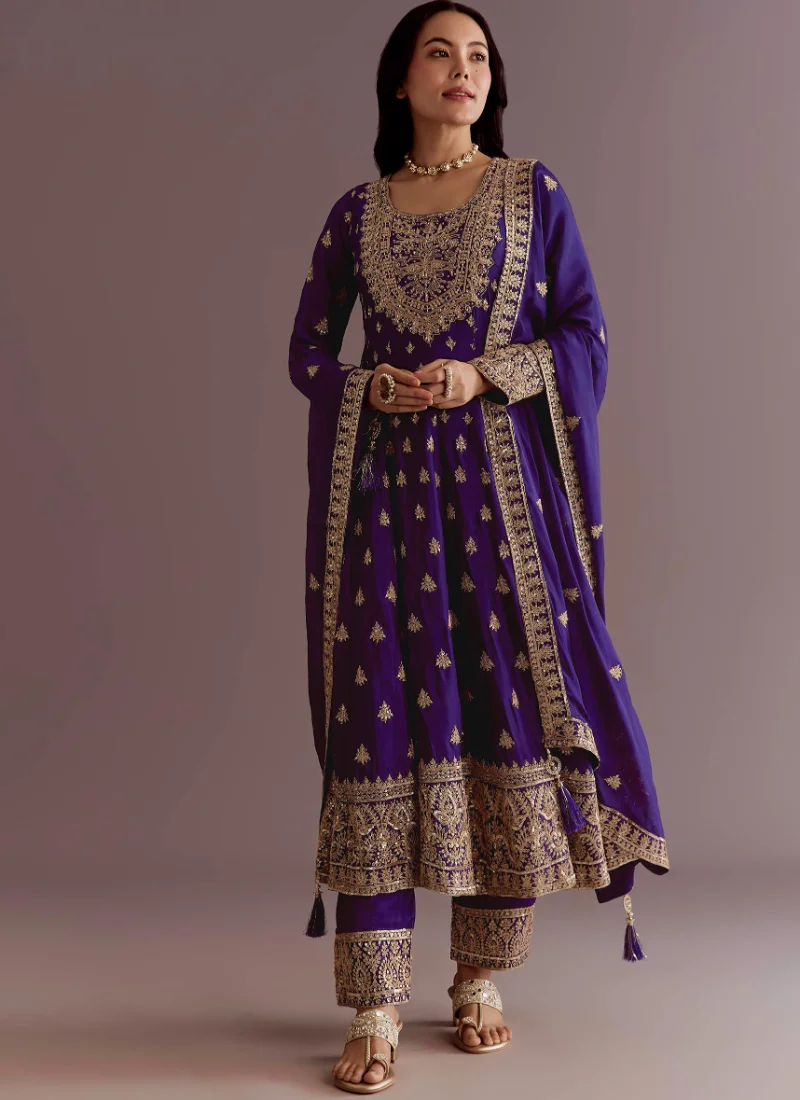 Product NamePurple Chinon Silk with Embroidery Sequence Work Palazzo Suit