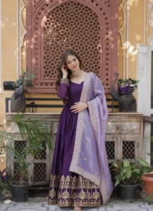 Designed for festive elegance, this Purple Faux Blooming Embroidered Salwar Suit brings together graceful styling and everyday comfort.