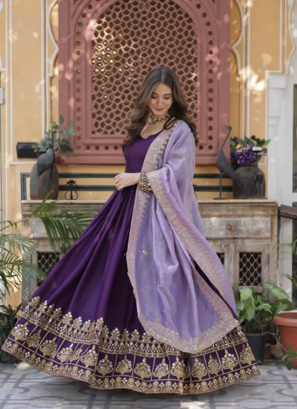 Perfect for festive gatherings, family functions, wedding events, and celebration wear, this Purple Faux Blooming Embroidered Salwar Suit is designed to deliver standout style with versatile elegance.