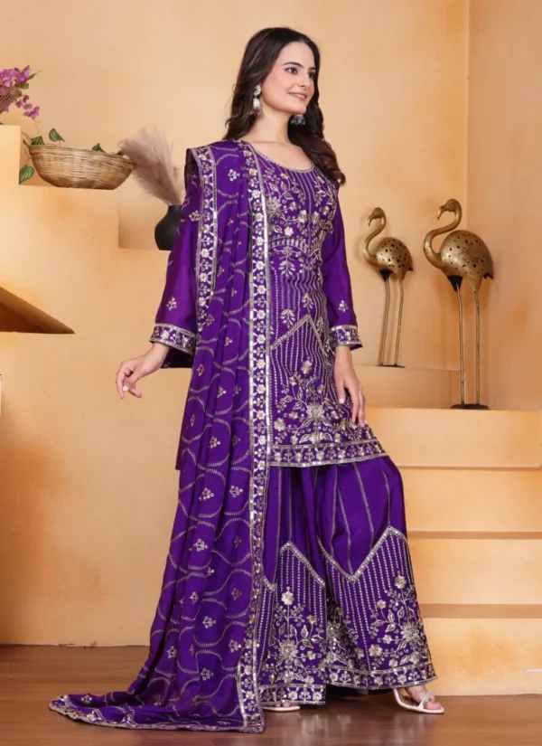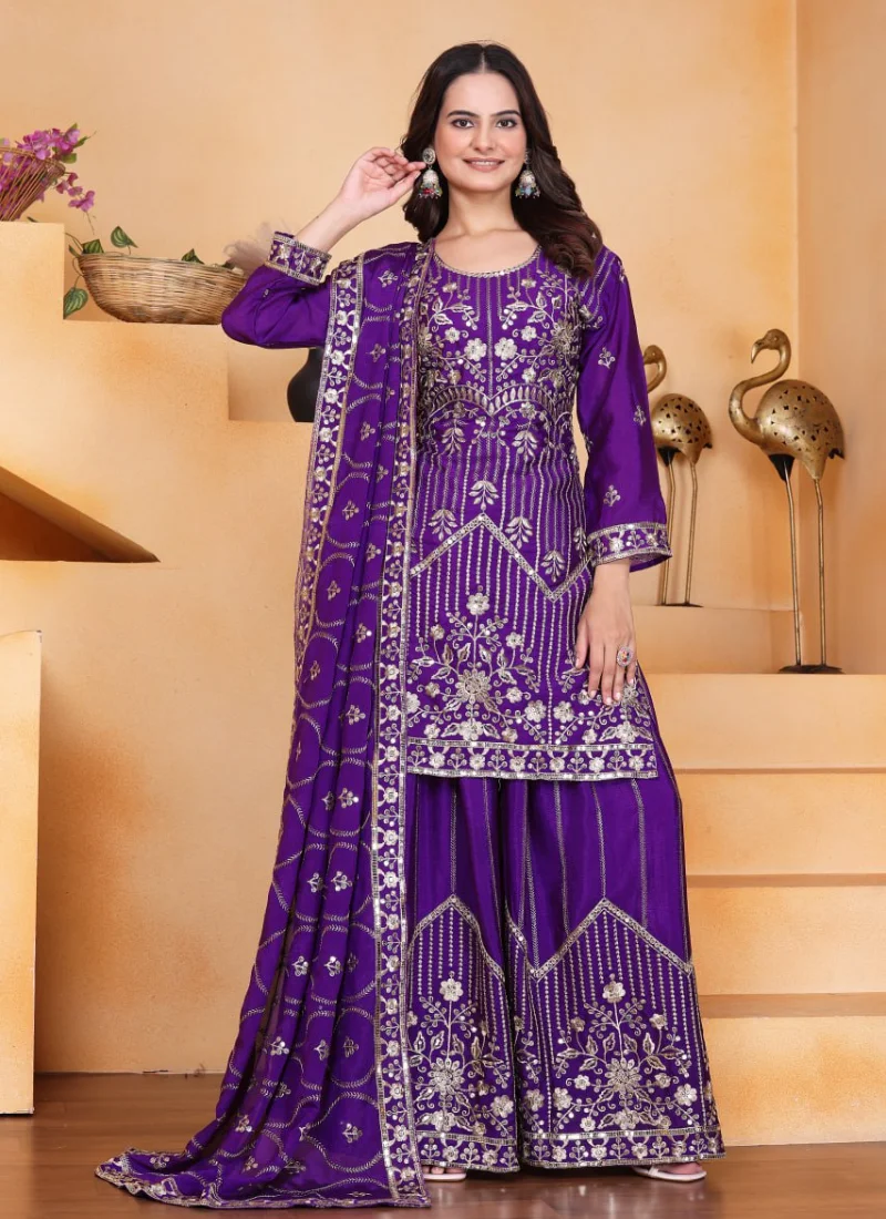 Whether styled for festive outings, party wear, or traditional celebrations, this Purple Georgette Embroidered Salwar Suit offers a premium ethnic look that feels timeless and easy to accessorize.