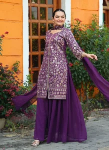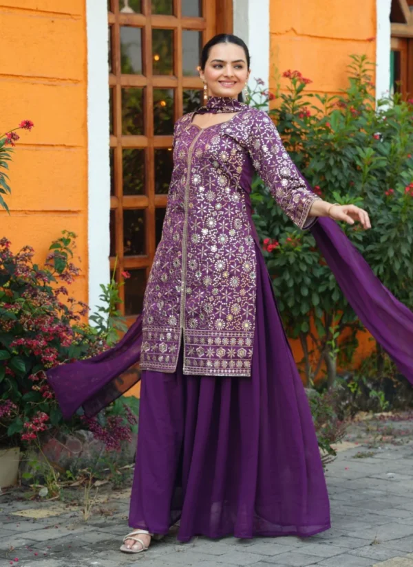 Whether styled for festive outings, party wear, or traditional celebrations, this Purple Georgette Embroidered Salwar Suit offers a premium ethnic look that feels timeless and easy to accessorize.