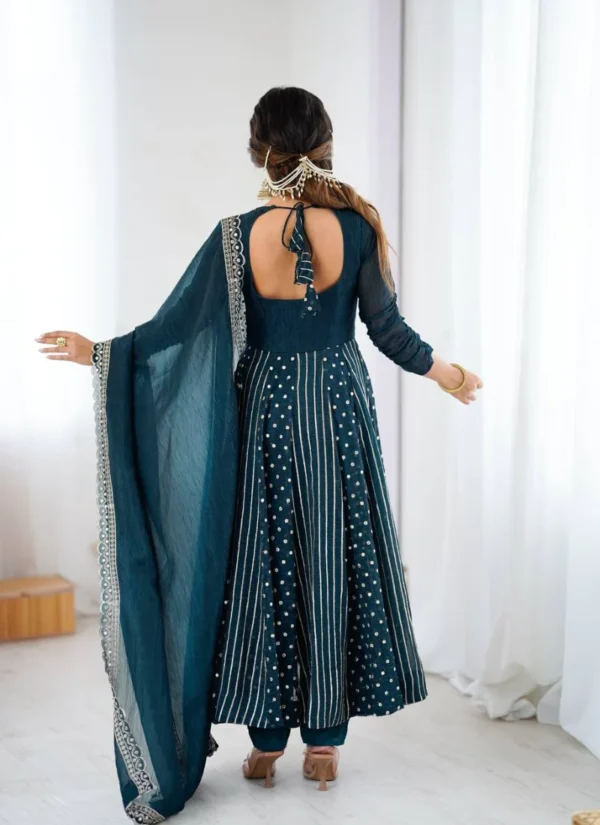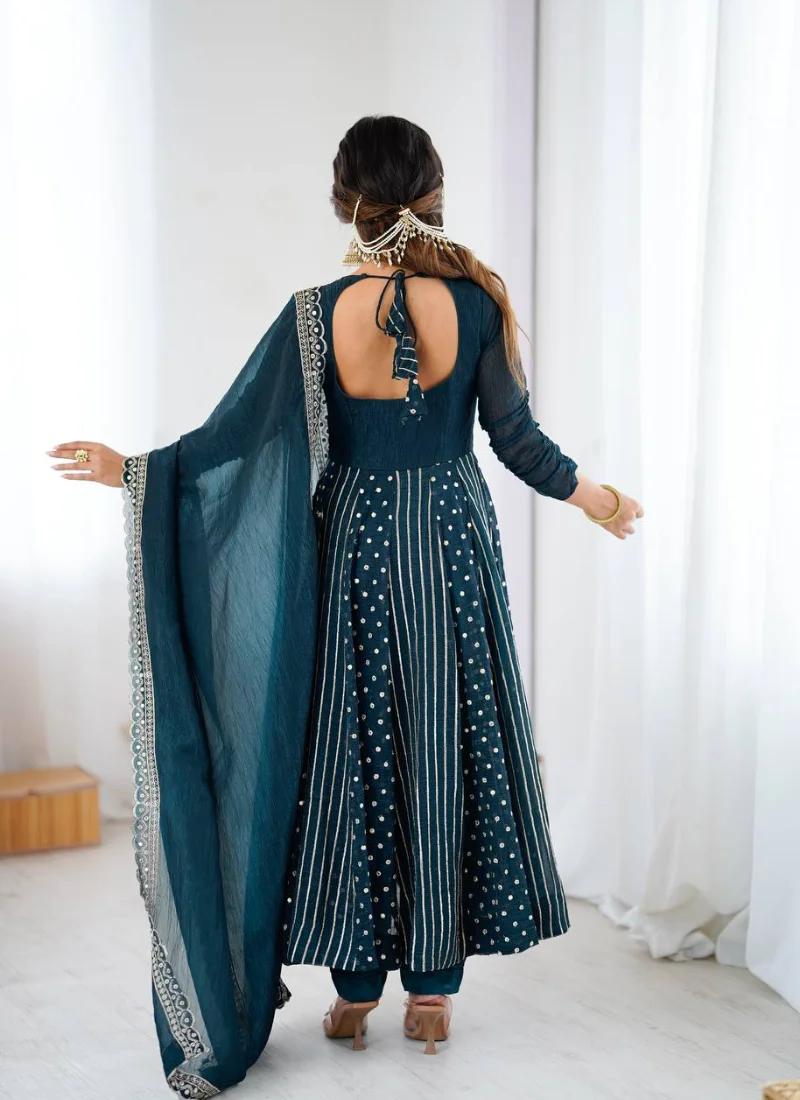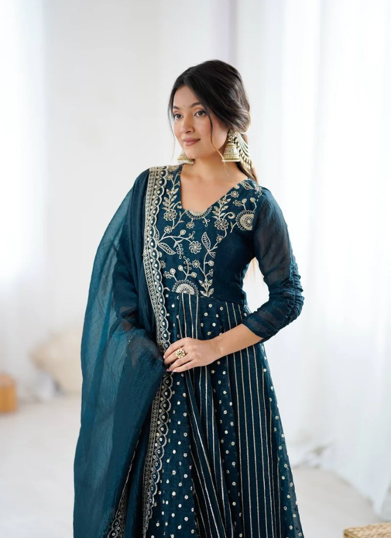 Product NameTeal Anarkali Gown in Crunchy Silk with Flair Sequins Work Anarkali Set