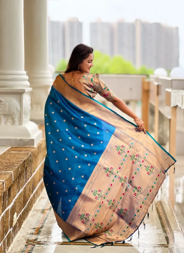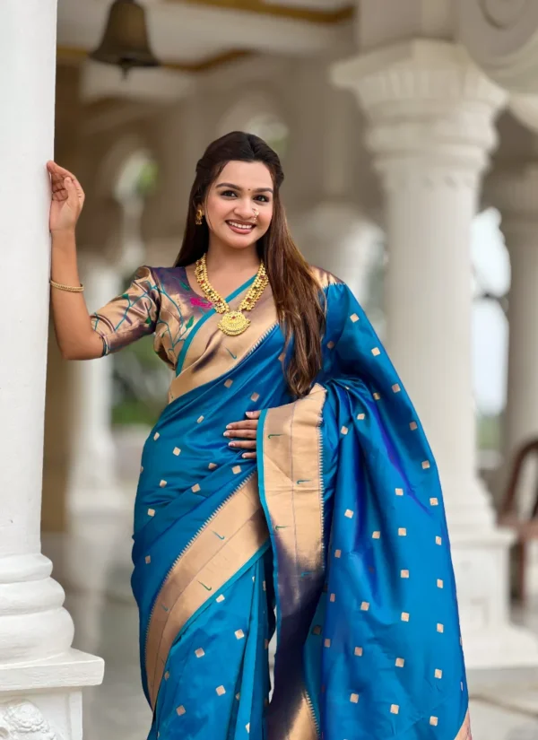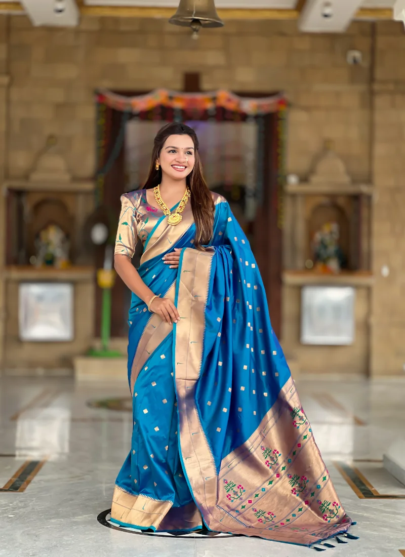 Turquoise Soft Paithani Silk Saree with Zari
