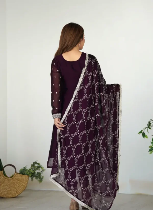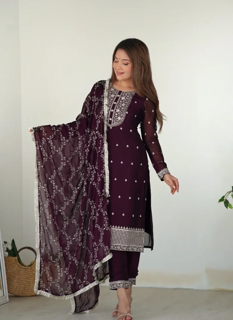 Product Highlights: Choose the Wine Rangoli Silk Kurta Set for beautiful embroidery sequence and thread work on the yoke, sleeves, bottom lace work, embroidery sequence and thread work, fancy lace work along the border, a length of Approximate Length: 42 to 43 inches, coordinated styling and an effortless dressed-up finish suited to parties, pujas, and wedding occasions.