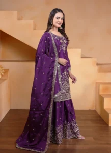 Whether styled for festive outings, party wear, or traditional celebrations, this Wine Silk Embroidered Salwar Suit offers a premium ethnic look that feels timeless and easy to accessorize.