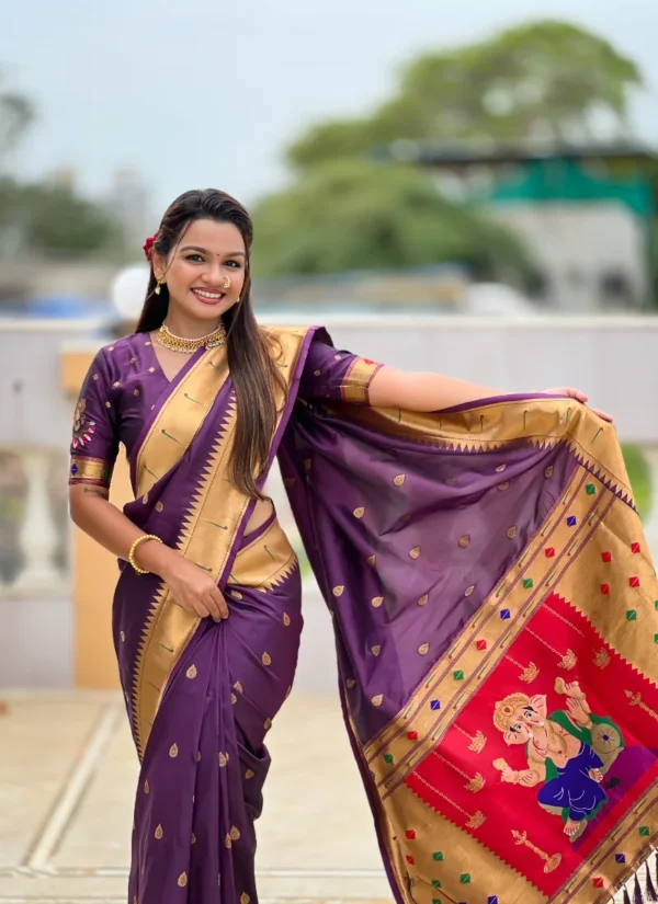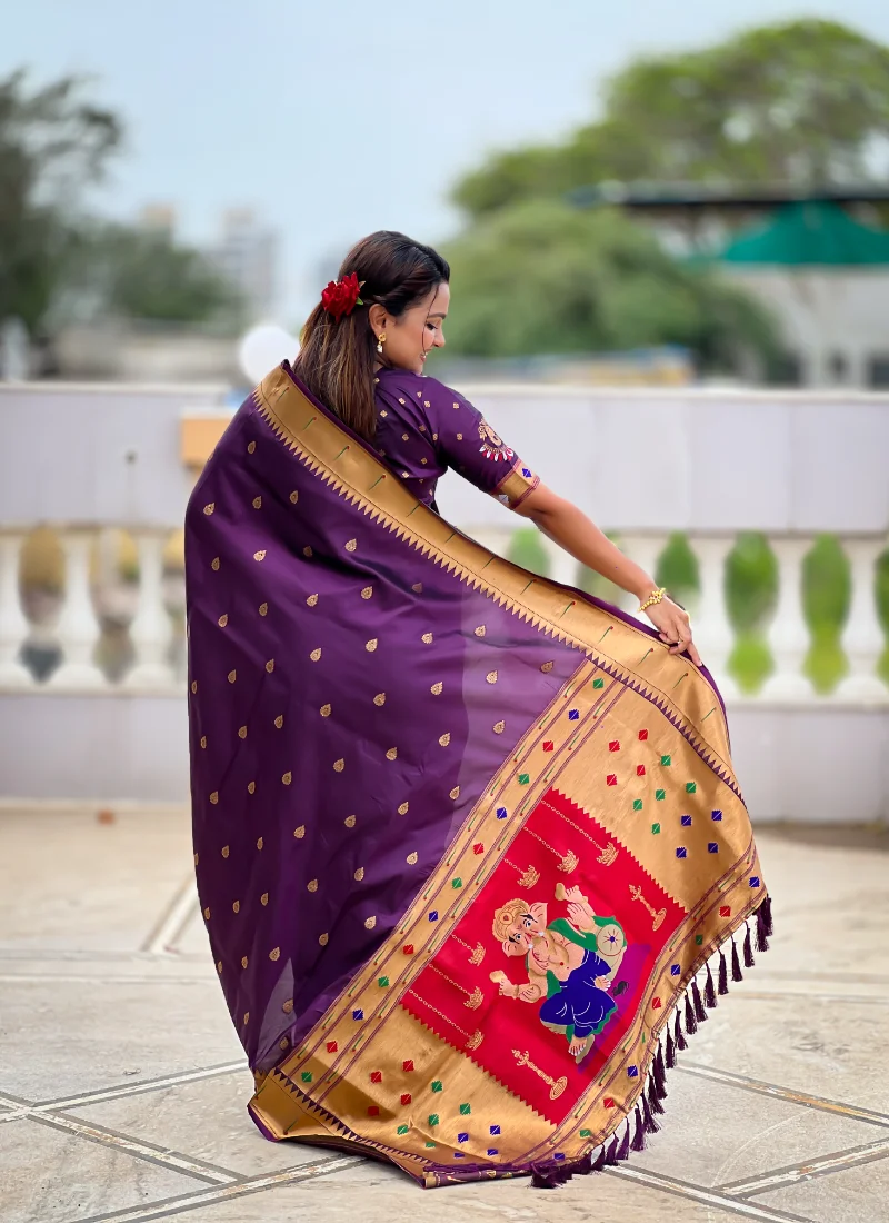 Ideal for weddings, festive gatherings, family functions, and gifting, this wine banarasi silk saree offers a timeless silhouette with statement craftsmanship. Saree length is 5.50 mtr and blouse length is 0.80 Meter, with estimated shipping time of 1-2 Days.