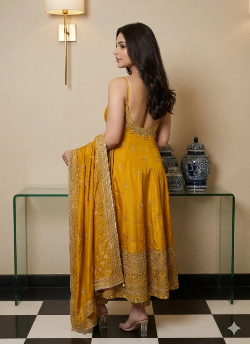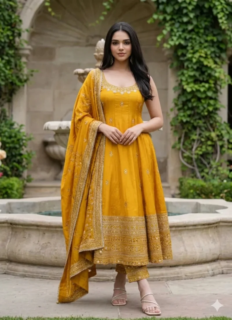 Whether styled for festive outings, party wear, or traditional celebrations, this Yellow Silk Embroidered Salwar Suit offers a premium ethnic look that feels timeless and easy to accessorize.